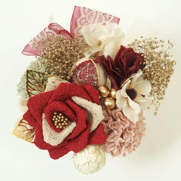 洋のテイストに彩度控えめのエレガントカラー。レースやチュールの西洋素材をアクセントに日本の技法を用いて可愛く仕上げました。