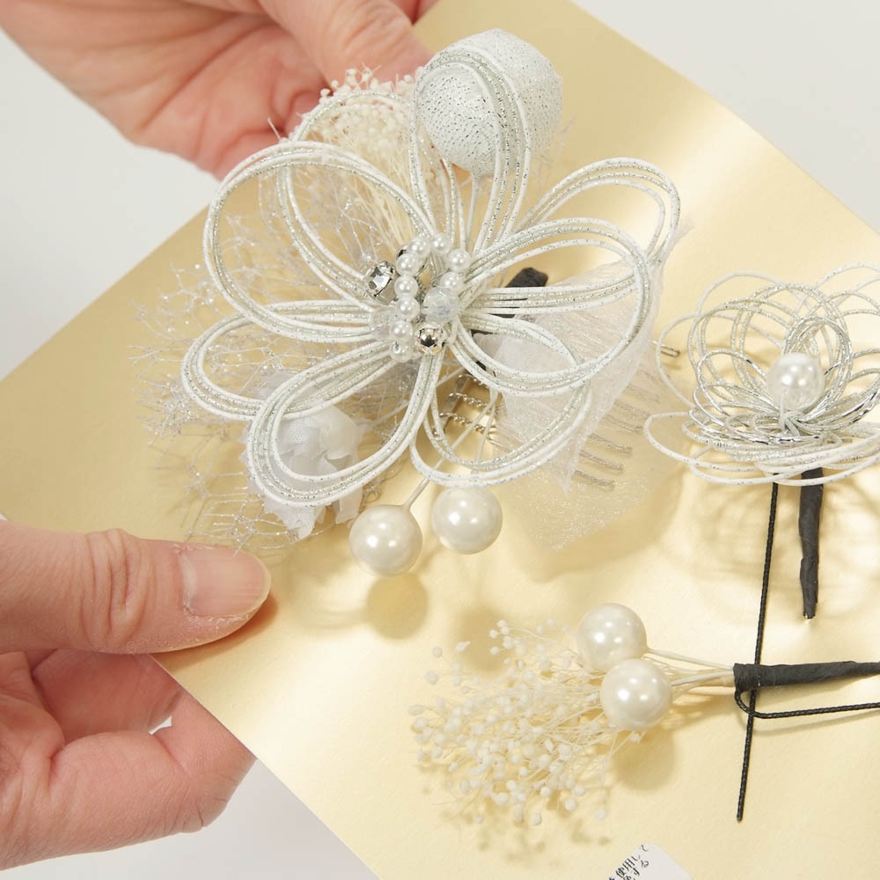 大きい飾りがコーム式、小さい飾りはUピン式になっています。