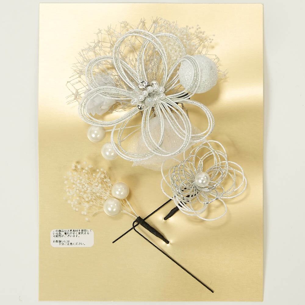 【きもの山喜】髪飾り 振袖 成人式 袴 3個セット シャルマン かんざし リボン 水引 可愛い おしゃれ 日本製 白 シルバー