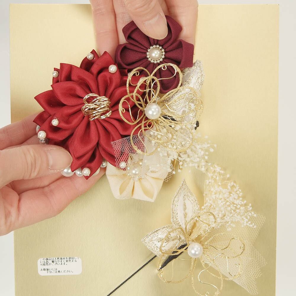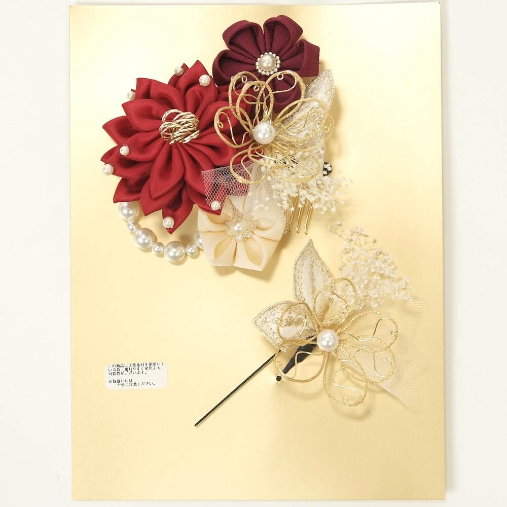 【きもの山喜】髪飾り 振袖 成人式 袴 2個セット シャルマン ドライフラワー パール 可愛い おしゃれ 日本製 赤