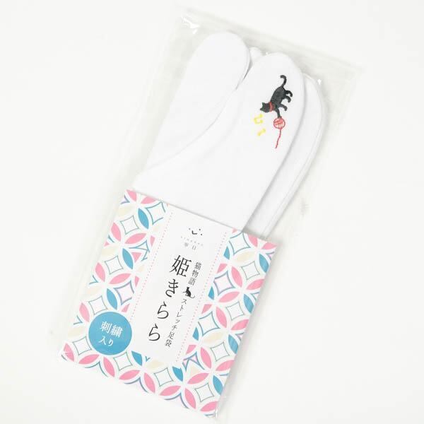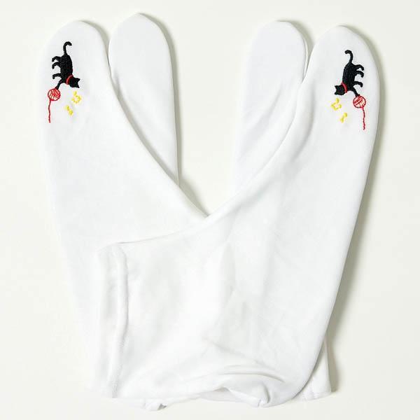 【きもの山喜】足袋 ストレッチ足袋 足袋ソックス 靴下足袋 口ゴム 22.5-24.5 フリーサイズ 猫 刺繍 カジュアル 白