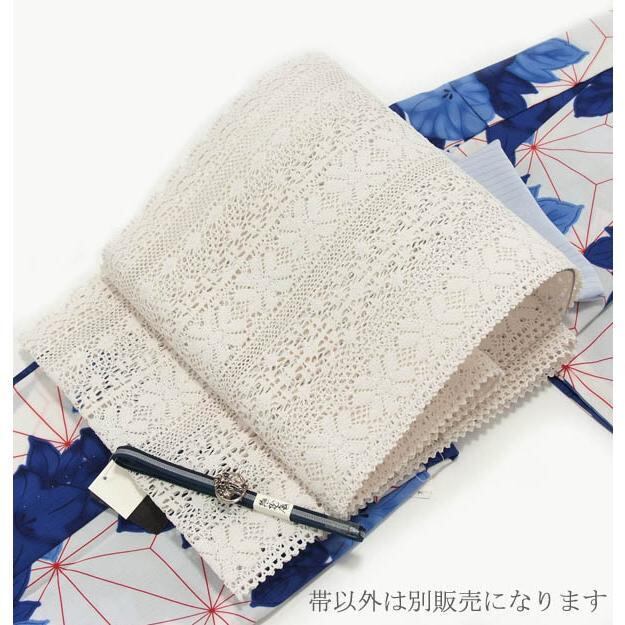 レースの帯ですので、夏の着物はもちろん、浴衣に合わせて着物風にコーディネイトして頂くとワンランク上の着こなしになります。