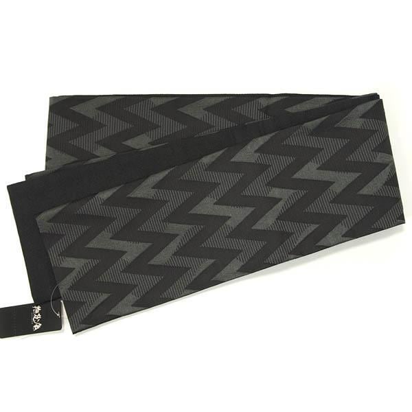 【きもの山喜】半幅帯 撫松庵 レディース リバーシブル 浴衣帯 半巾帯 細帯 オールシーズン 日本製 シェブロンストライプ 黒