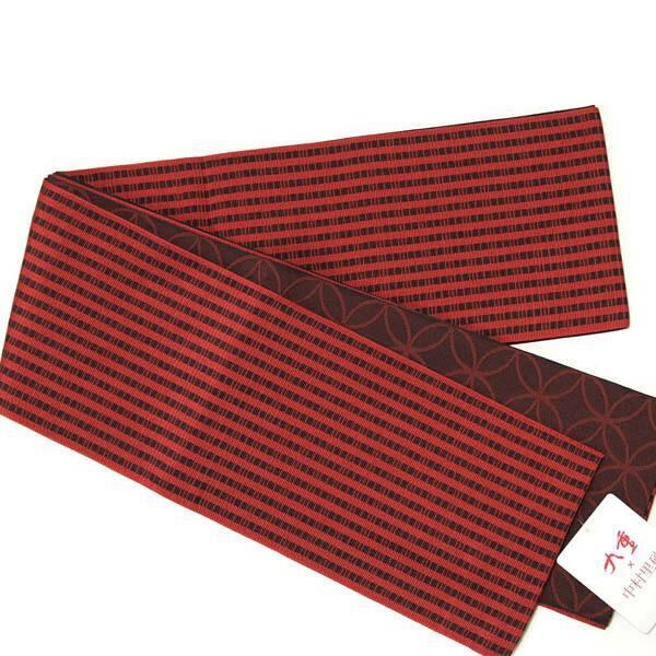 【きもの山喜】半幅帯 レディース リバーシブル 浴衣帯 九重×中村里砂 日本製 オールシーズン ポリエステル 赤