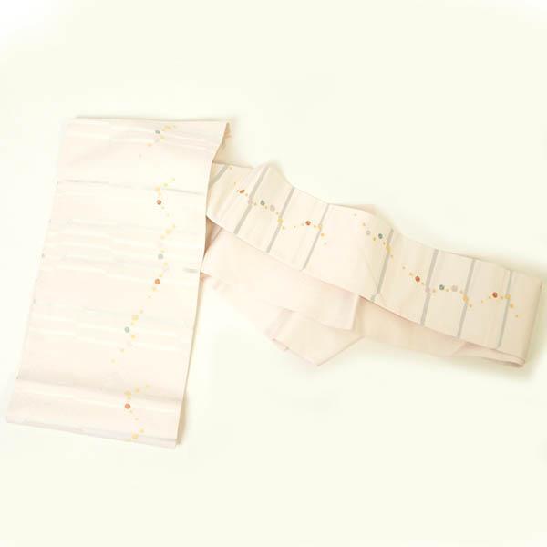 【きもの山喜】名古屋帯 正絹 仕立て上がり品 西陣 九寸帯 なごや帯 日本製 カジュアル 薄ピンク