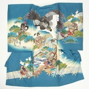 【きもの山喜】お宮参り着物 のしめ 男の子 産着 初着 祝着 正絹 鷹 青