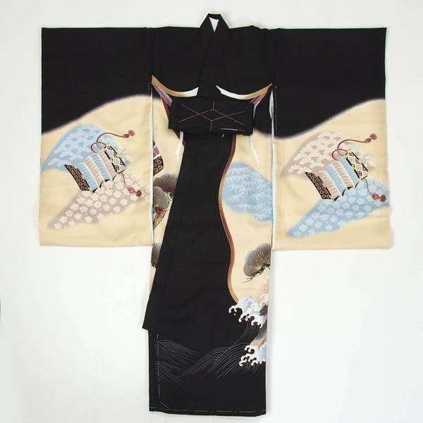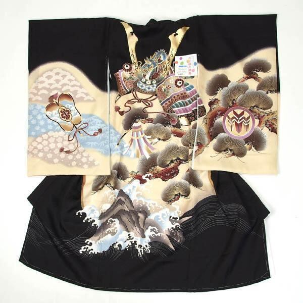 【きもの山喜】お宮参り 着物 男の子 のしめ 産着 祝着 正絹 日本製 赤ちゃん 黒 兜