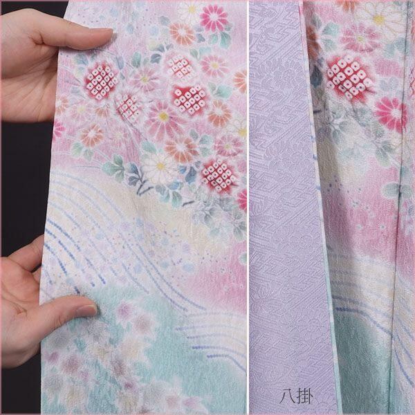 優しい淡いお色目の地色に、桜や菊などのお花の柄が施されてあります。