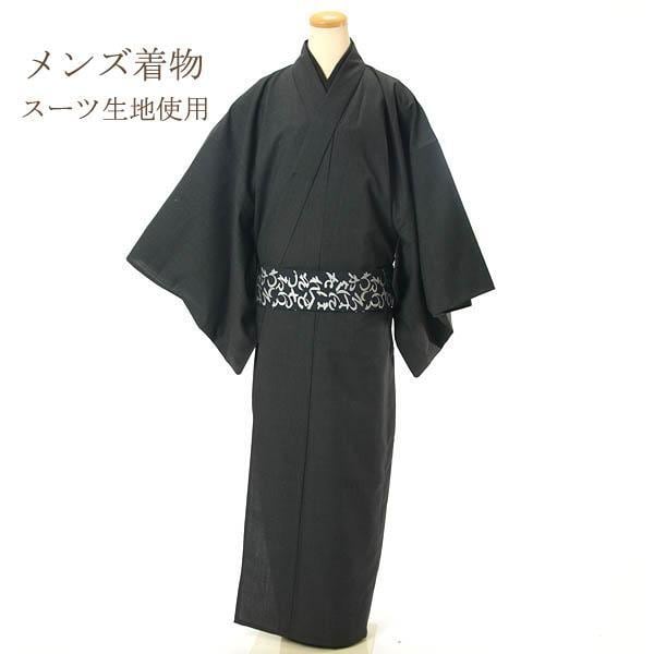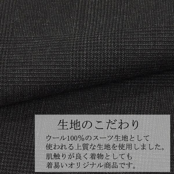 【きもの山喜】紳士 オーダースーツ生地使用 オリジナル メンズ 着物 仕立て上がり品 単品 M・L・LL 3サイズ ウール カジュアル グレンチェック チャコールグレー