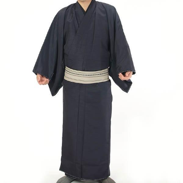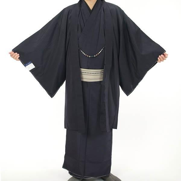 【きもの山喜】紳士 男 メンズ 着物 羽織 2点セット M・L・LL 3サイズ 洗える着物 ポリエステル アンサンブル カジュアル 正月 初詣 紺