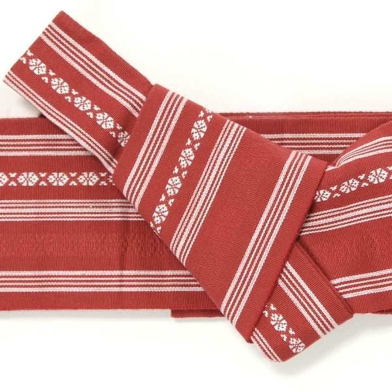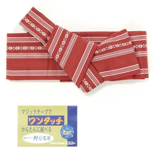 【きもの山喜】角帯 ワンタッチ 男帯 綿 献上柄 マジックテープでとめるだけ 日本製 エンジ色