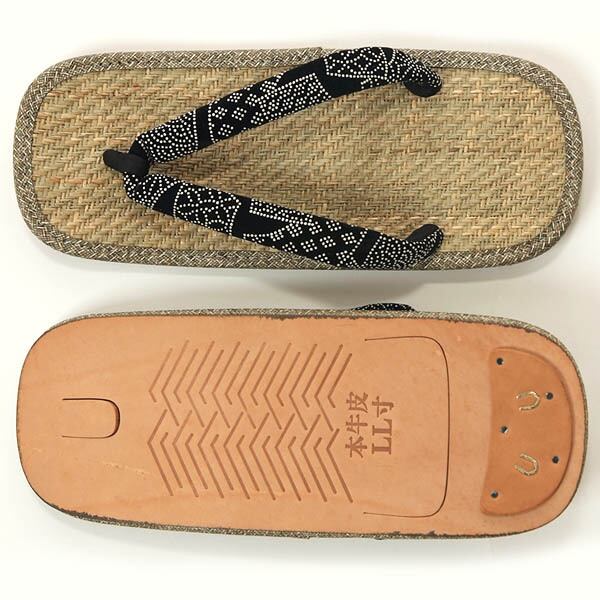 【きもの山喜】雪駄 メンズ LLサイズ 26-27cm パナマ 編み 本革底 三枚芯 印伝調鼻緒 履きやすくて歩きやすい