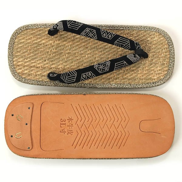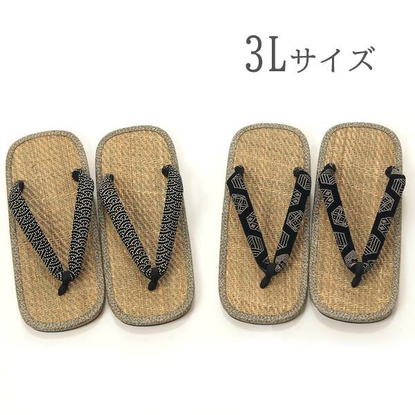 【きもの山喜】雪駄 メンズ 3Lサイズ 27-28cm パナマ 編み 本革底 三枚芯 印伝調鼻緒 履きやすくて歩きやすい