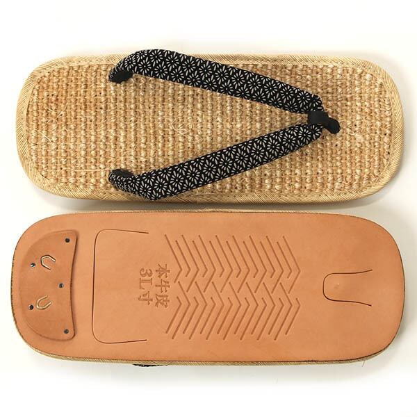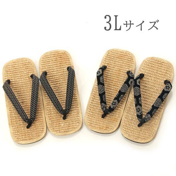 【きもの山喜】雪駄 メンズ 3Lサイズ 25-26cm ムシロ 編み 本革底 三枚芯 印伝調鼻緒 履きやすくて歩きやすい 2柄