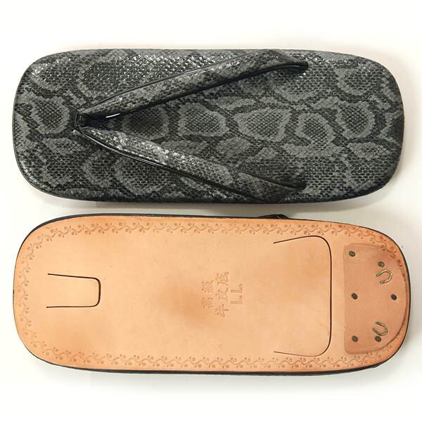 【きもの山喜】雪駄 メンズ LLサイズ 26-27cm 蛇皮調 本革底 三枚芯 履きやすくて歩きやすい 黒