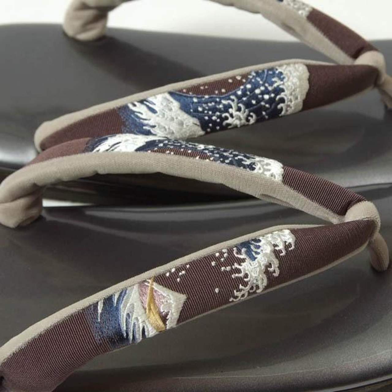 鼻緒の部分は絹素材で波や富士山の刺繍が施されています。