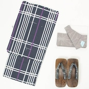 浴衣にワンタッチの角帯、下駄の3点セットになります。
