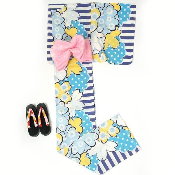 浴衣:綿 100% 帯:ポリエステル 下駄:台 桐