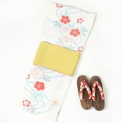 大人女性用の浴衣に半巾帯、下駄をセットにしました。