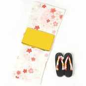 大人女性用の浴衣に半巾帯、下駄をセットにしました。
