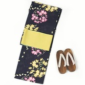 大人女性用の浴衣に半巾帯、下駄をセットにしました。