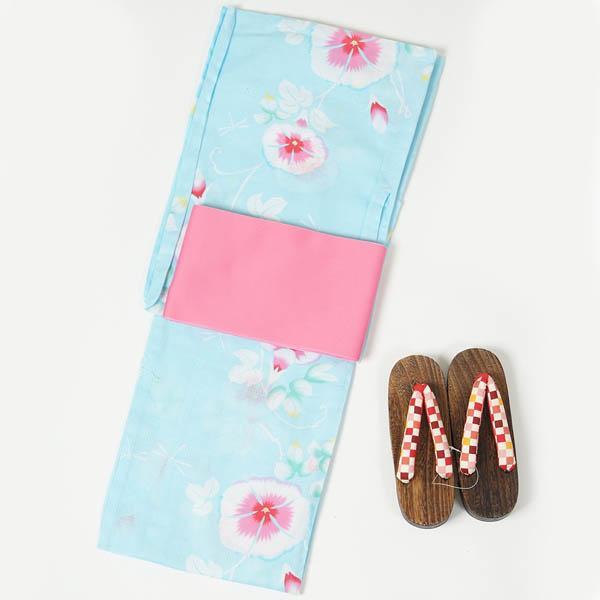 大人女性用の浴衣に半巾帯、下駄をセットにしました。