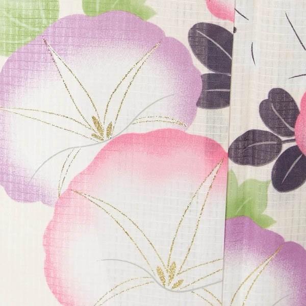 【きもの山喜】浴衣 レディース 2点セット 綿100% 紅梅織り クリーム 朝顔