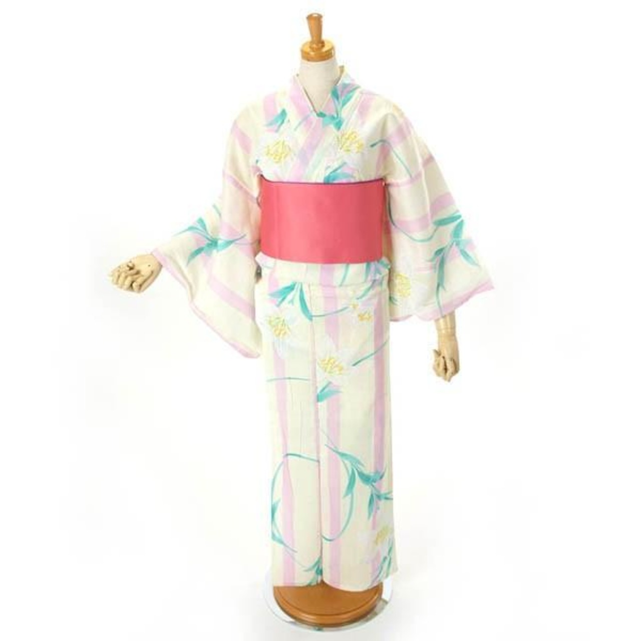 【きもの山喜】浴衣 レディース 2点セット 綿100% 紅梅織り クリーム ゆり