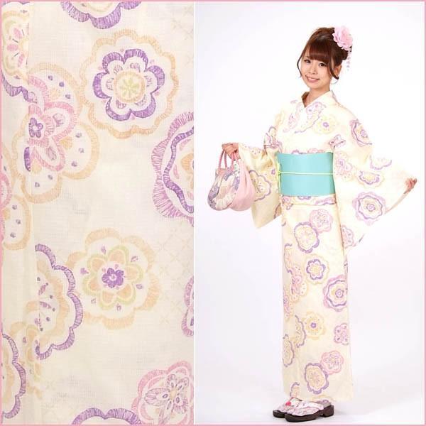 ポップで可愛い柄が特徴のゆかたです。綿紅梅織りで適度な透け感が涼しげです。