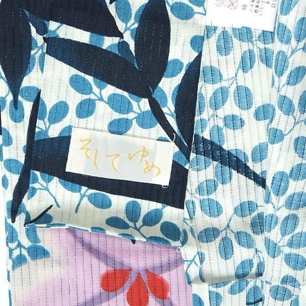 【きもの山喜】浴衣 レディース そしてゆめ浴衣+そしてゆめ半巾帯+下駄 3点セット オフホワイト 水色