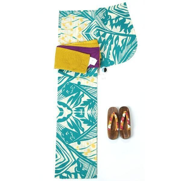 応身長 155cm〜170cm位 半巾帯:長さ 約397cm 幅 約16.8cm 下駄:フリーサイズ