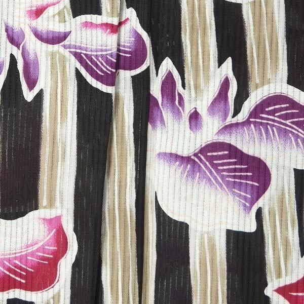 【きもの山喜】浴衣 レディース そしてゆめ 3点セット 大人ゆかた 黒 縞 菖蒲 あやめ