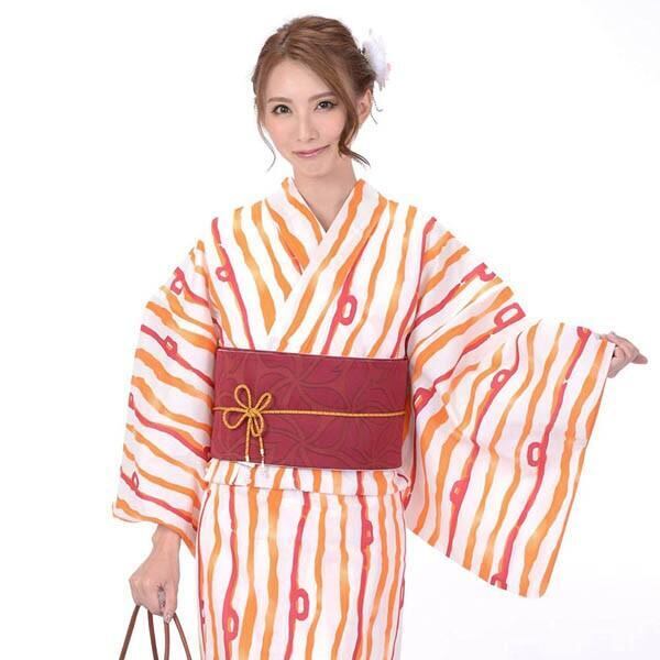 【きもの山喜】ゆかた レディース 女性 3点セット hiromichi nakano 吸水速乾 ポリエステル 白地に縞