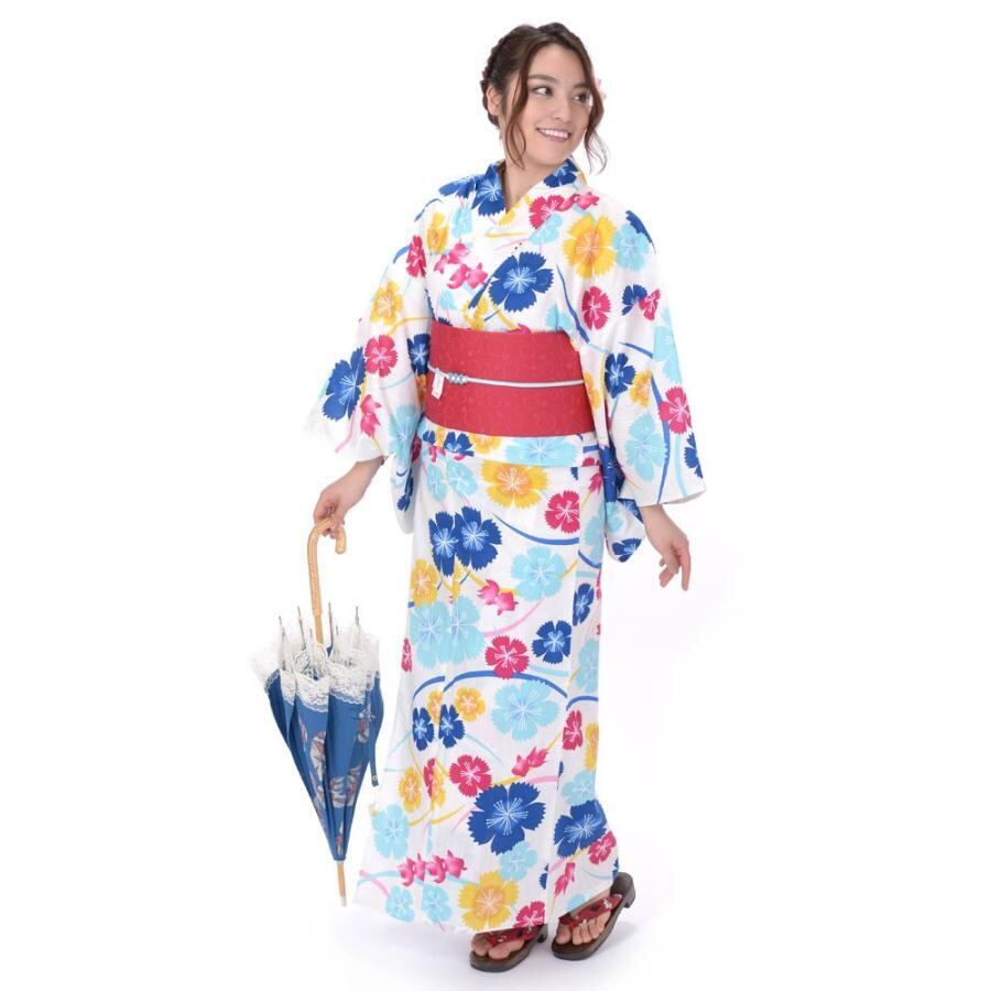 【きもの山喜】ゆかた レディース 女性 3点セット 山本彩 白地になでしこ・金魚