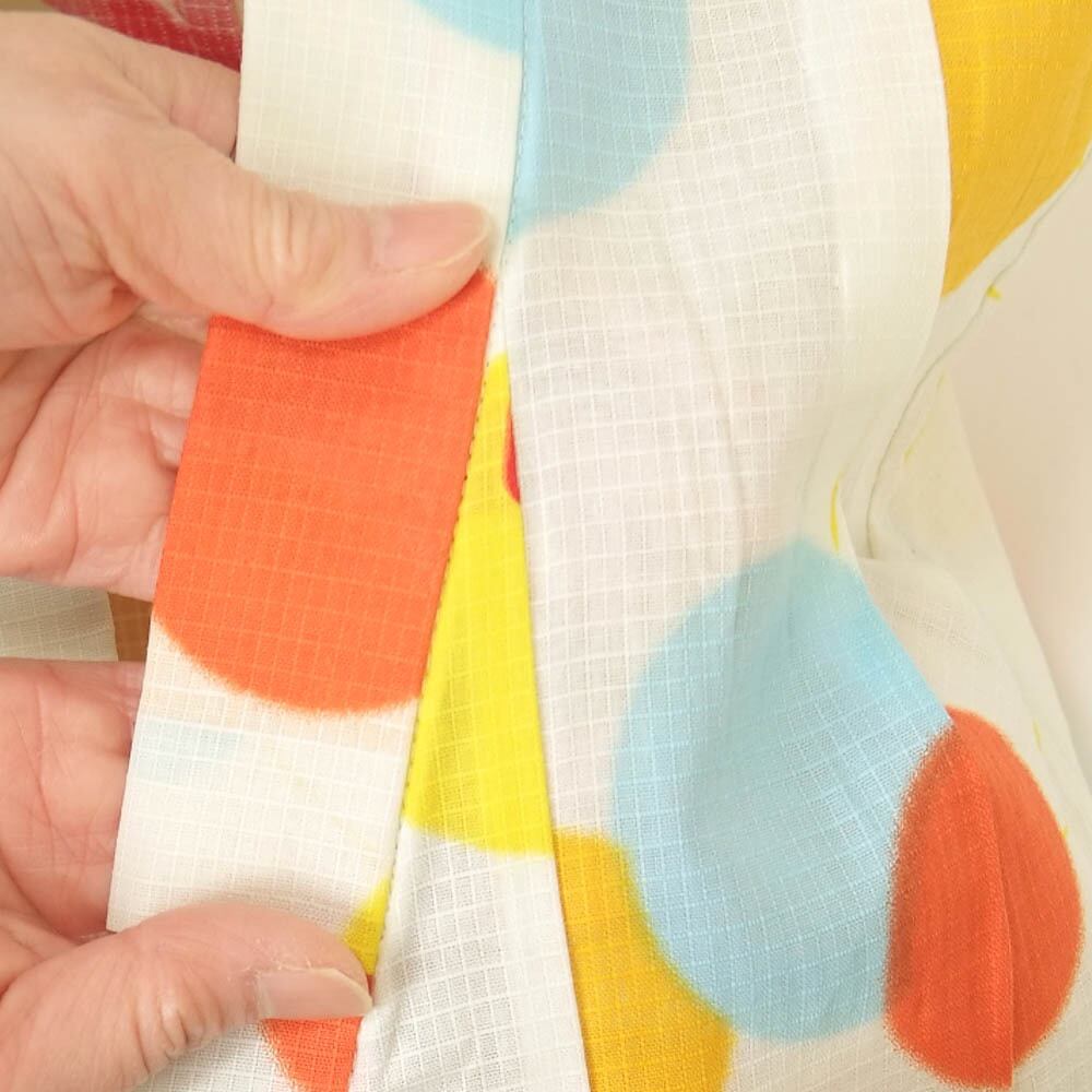 こちらの浴衣は、揚げ加工がしてあり、腰紐付きですので、簡単に装着可能です。