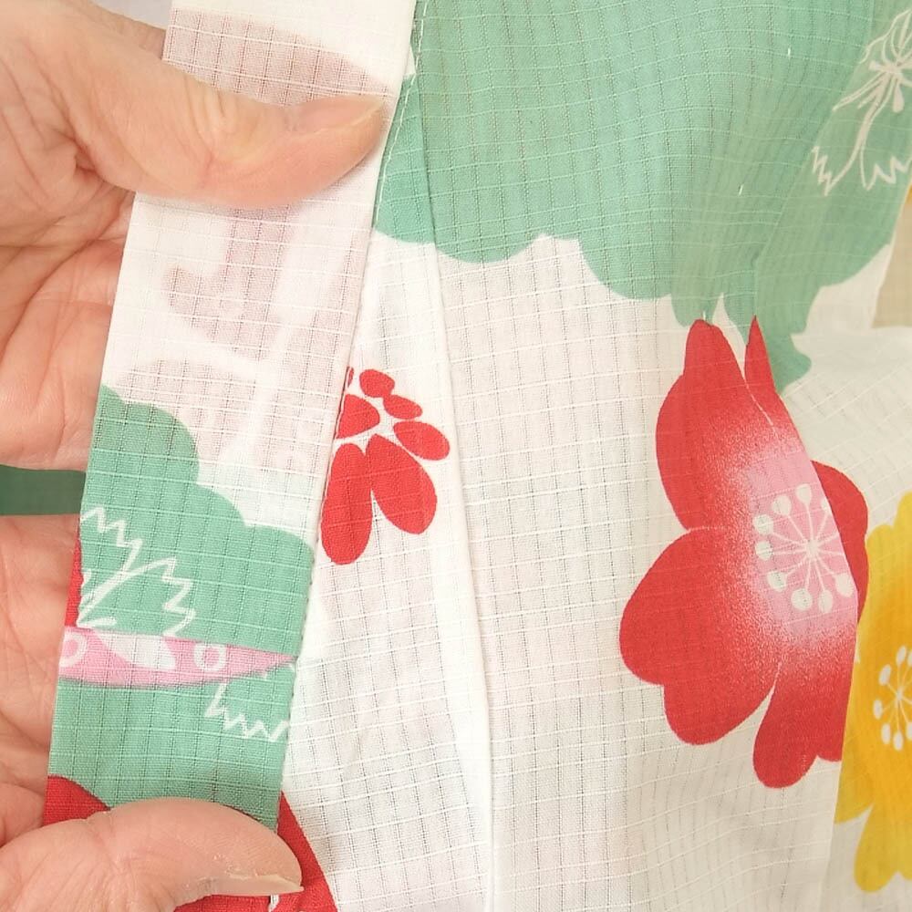 こちらの浴衣は、揚げ加工がしてあり、腰紐付きですので、簡単に装着可能です。