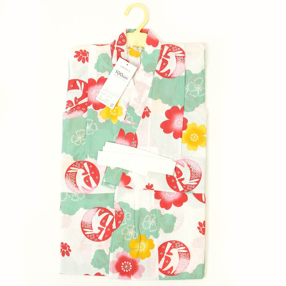 【きもの山喜】子供浴衣 女の子 100cm 3-4才 単品 キッズ ゆかた 可愛い 紅梅織 綿 生成り うさぎ