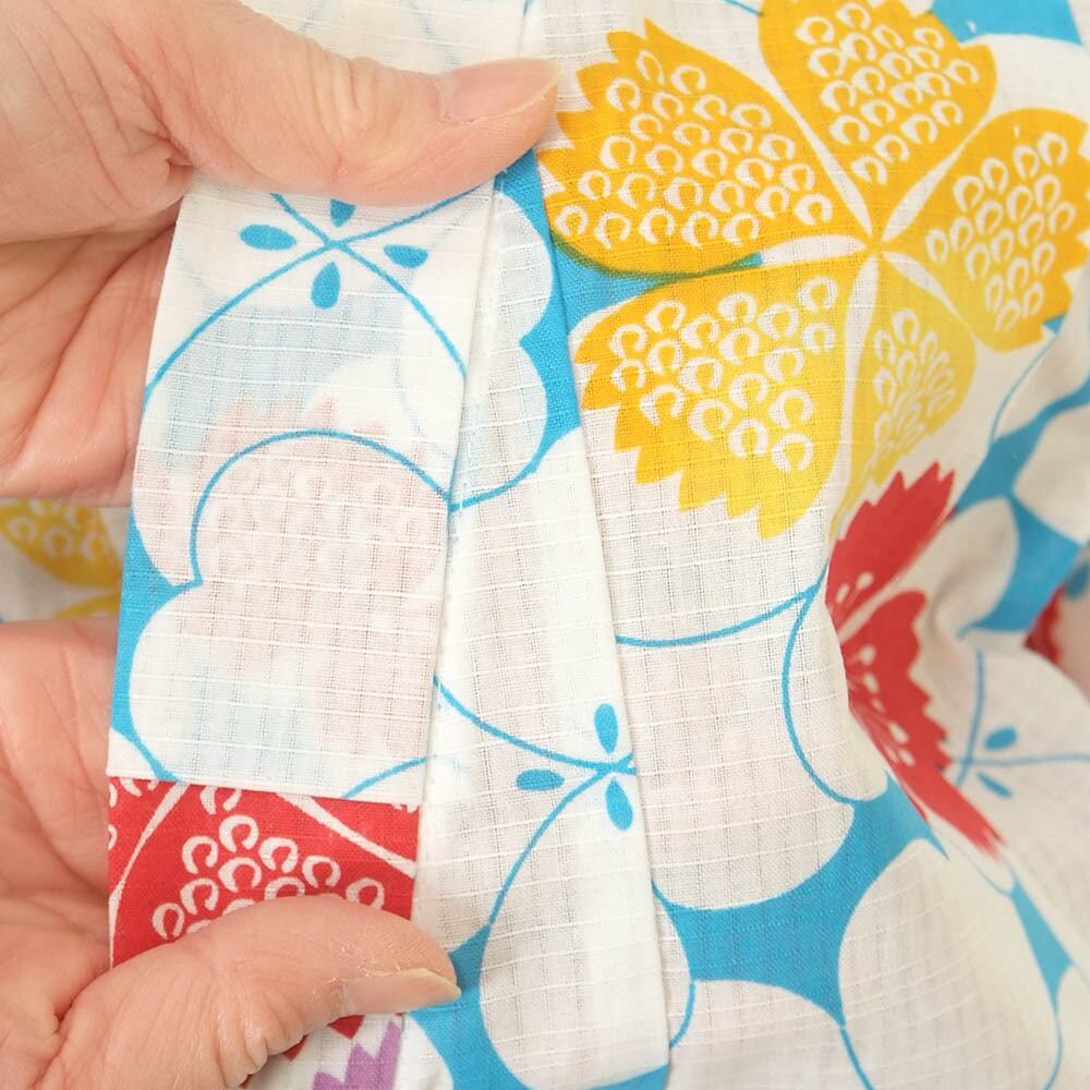 こちらの浴衣は、揚げ加工がしてあり、腰紐付きですので、簡単に装着可能です。