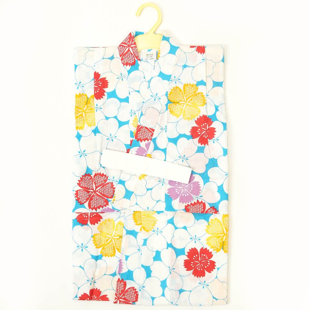 【きもの山喜】子供浴衣 女の子 100cm 3-4才 単品 キッズ ゆかた 可愛い 紅梅織 綿 白 撫子