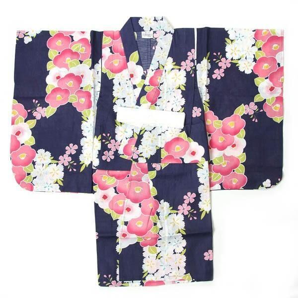 【きもの山喜】子供浴衣 女の子 100cm 3-4才 単品 キッズ ゆかた 可愛い 椿 紺