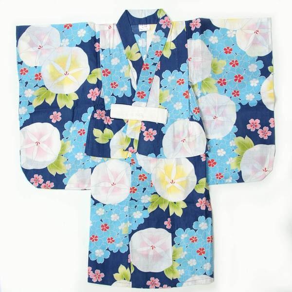 【きもの山喜】子供浴衣 女の子 100cm 3-4才 単品 キッズ ゆかた 可愛い 朝顔 青