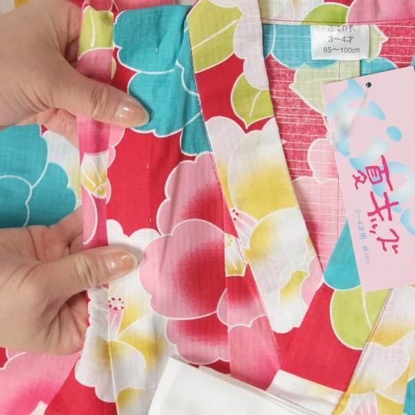 【きもの山喜】子供浴衣 女の子 100cm 3-4才 単品 キッズ ゆかた 可愛い 椿 赤
