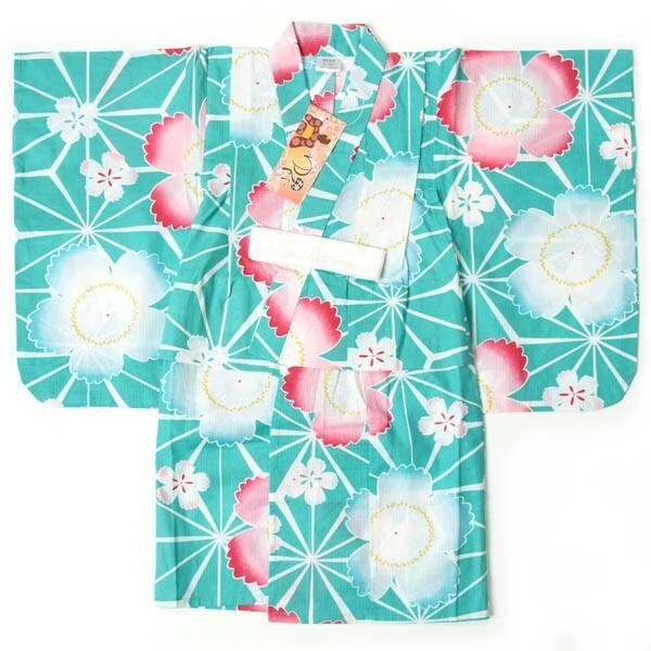 【きもの山喜】子供浴衣 女の子 100cm 3-4才 単品 キッズ ゆかた 可愛い さくら 緑
