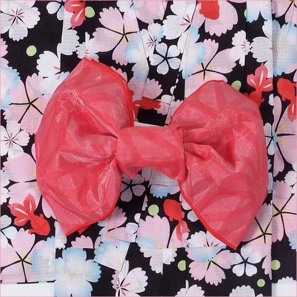 ゆかたは、綿100%の紅梅織りの涼しげな生地に桜と金魚の柄が施された可愛いデザインです。