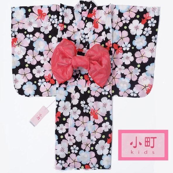 【きもの山喜】子供浴衣 女の子 100cm 3-4才 2点セット キッズ ゆかた 可愛い 小町kids 桜 黒