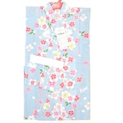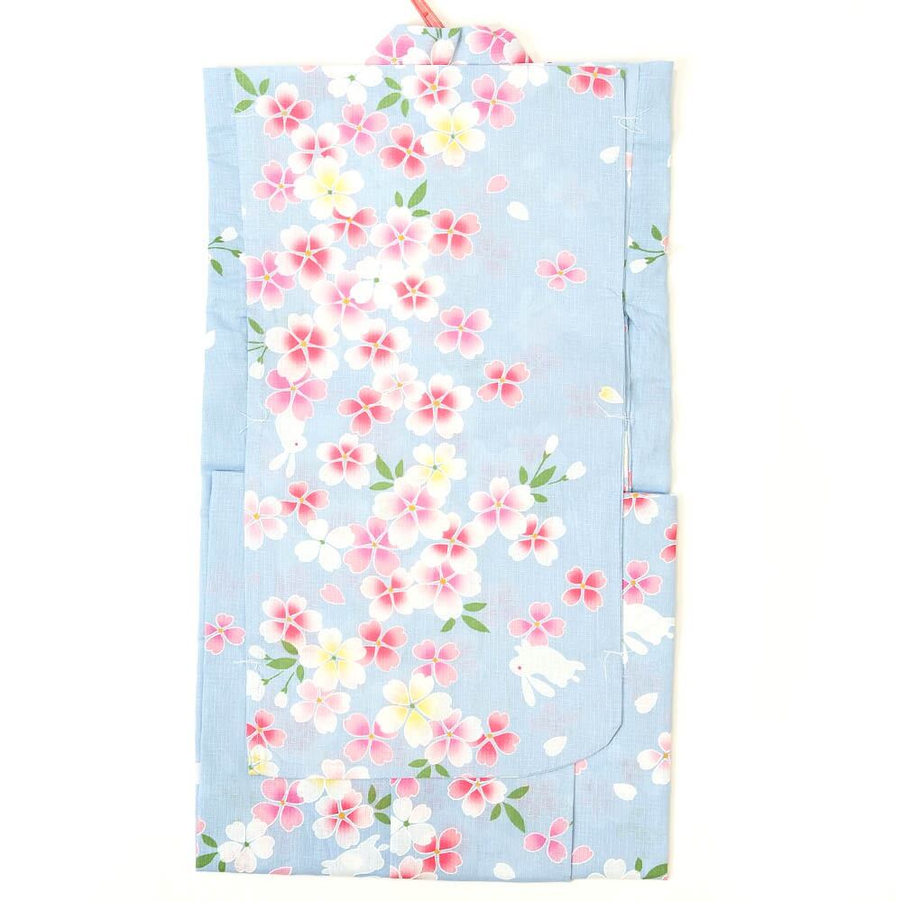 【きもの山喜】子供浴衣 女の子 110cm 5-6才 単品 キッズ ゆかた 可愛い 紅梅織 綿 花 うさぎ 水色