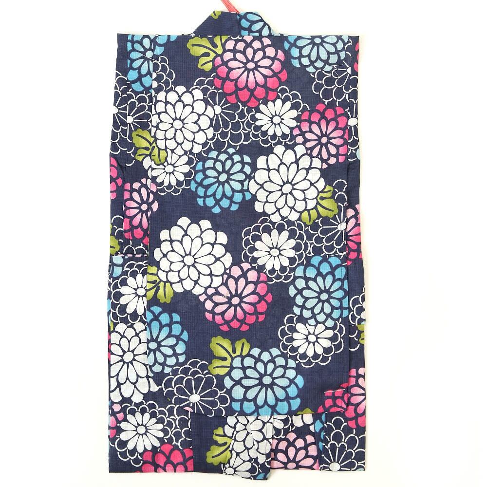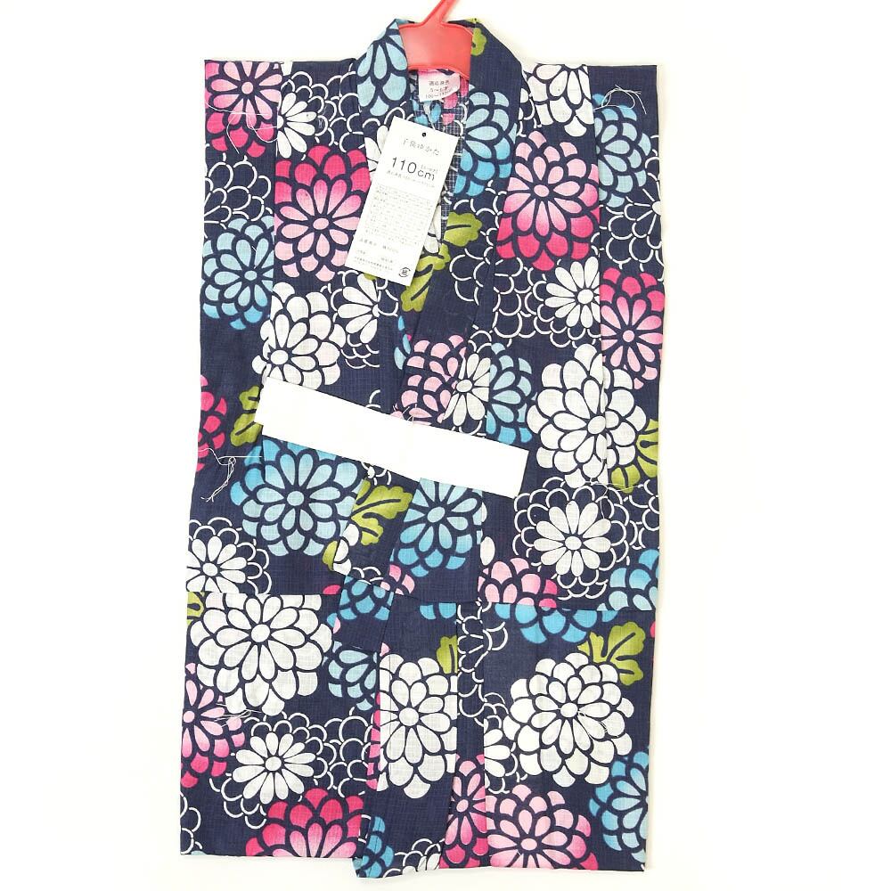 【きもの山喜】子供浴衣 女の子 110cm 5-6才 単品 キッズ ゆかた 可愛い 紅梅織 綿 花 紺