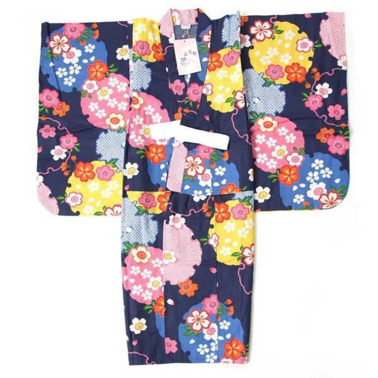 【きもの山喜】子供浴衣 女の子 110cm 5-6才 単品 キッズ ゆかた 可愛い 小さな恋人 さくら 紺