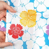 ゆかたは、綿100%の変わり紅梅織りの生地に和柄が施された可愛いデザインです。
