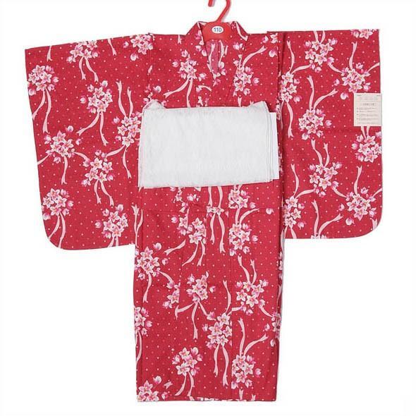 【きもの山喜】子供浴衣 女の子 110cm 5-6才 2点セット キッズ ゆかた 可愛い 赤